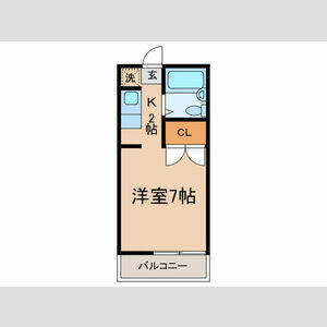 | 間取り | 1K(K2 x 洋7) | 主要採光面 | 南 |